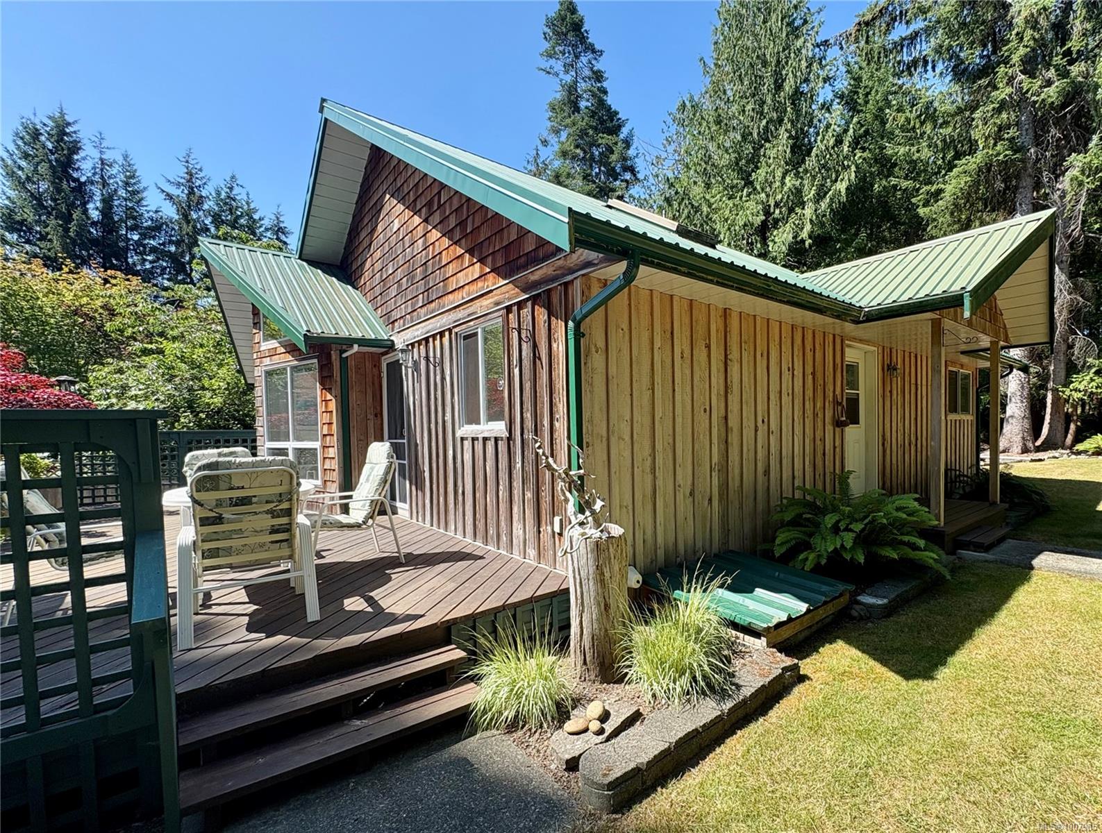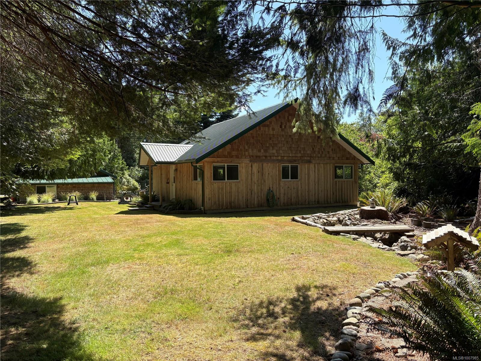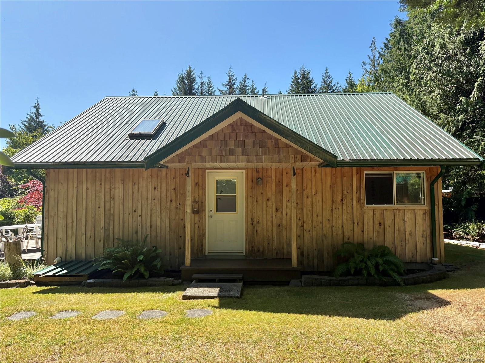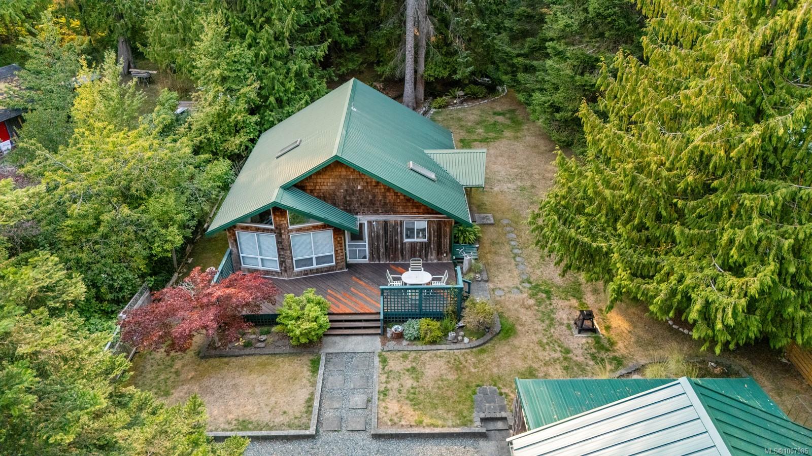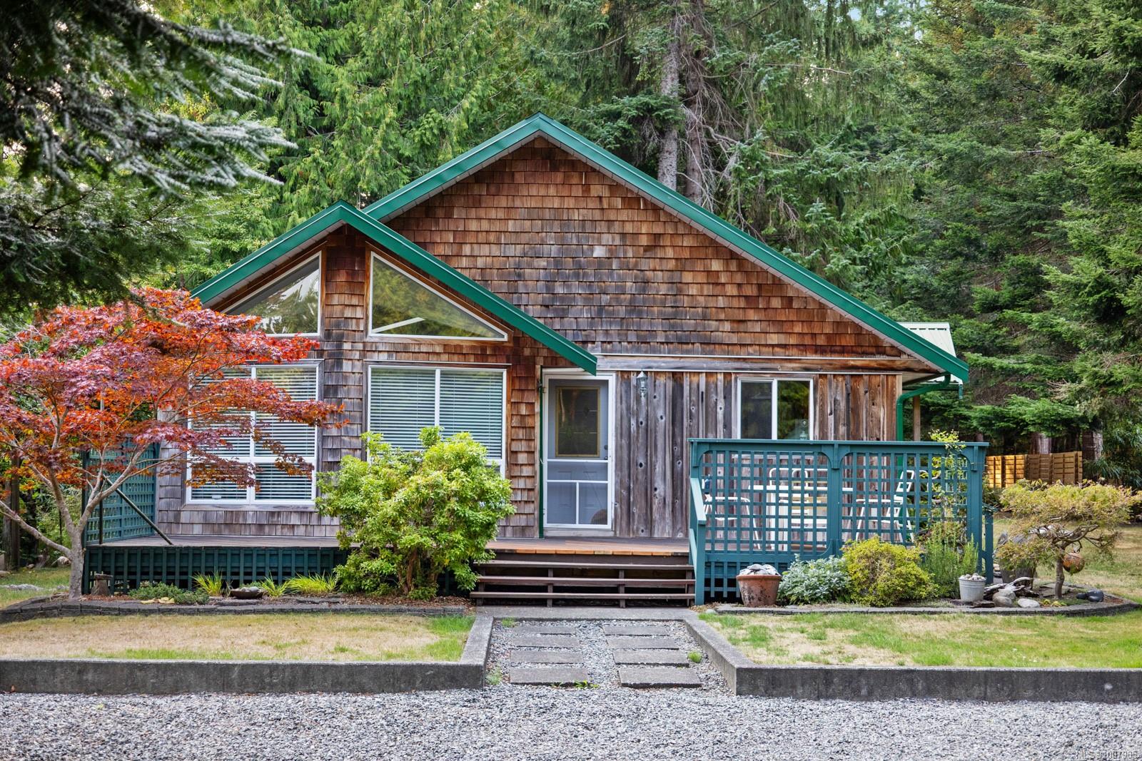 Welcome to this peaceful 2-bedroom, 1-bath home offering over 1000 sqft of charm and comfort, just moments from the sandy shores of Fillongley Provincial Park. This half-acre lot feels like a private sanctuary, with towering Douglas fir, cedar, and spruce sheltering the back garden, plus a seasonal creek and pond that meander through the woods invite birdsong and quiet reflection throughout parts of the year. Step inside the home where you are greeted with vaulted ceilings, large windows, and skylights flooding the open-concept living space with natural light—perfect for family gatherings or cozy evenings in with the propane fireplace tucked into one corner of the main living area. The two bedrooms are quietly tucked at the back, separated by a shared bath for added privacy. A newly roofed detached garage adds even more flexibility, with a guest room or storage space, bathroom, storage and 2 brand new water heaters add to the flexibility and comfort of this property. Laundry hook-ups are available in the garage. A place to unwind, connect, and breathe—whether full-time or just escaping for the weekend, you’ll feel right at home in this quiet and caring Denman Island neighborhood.